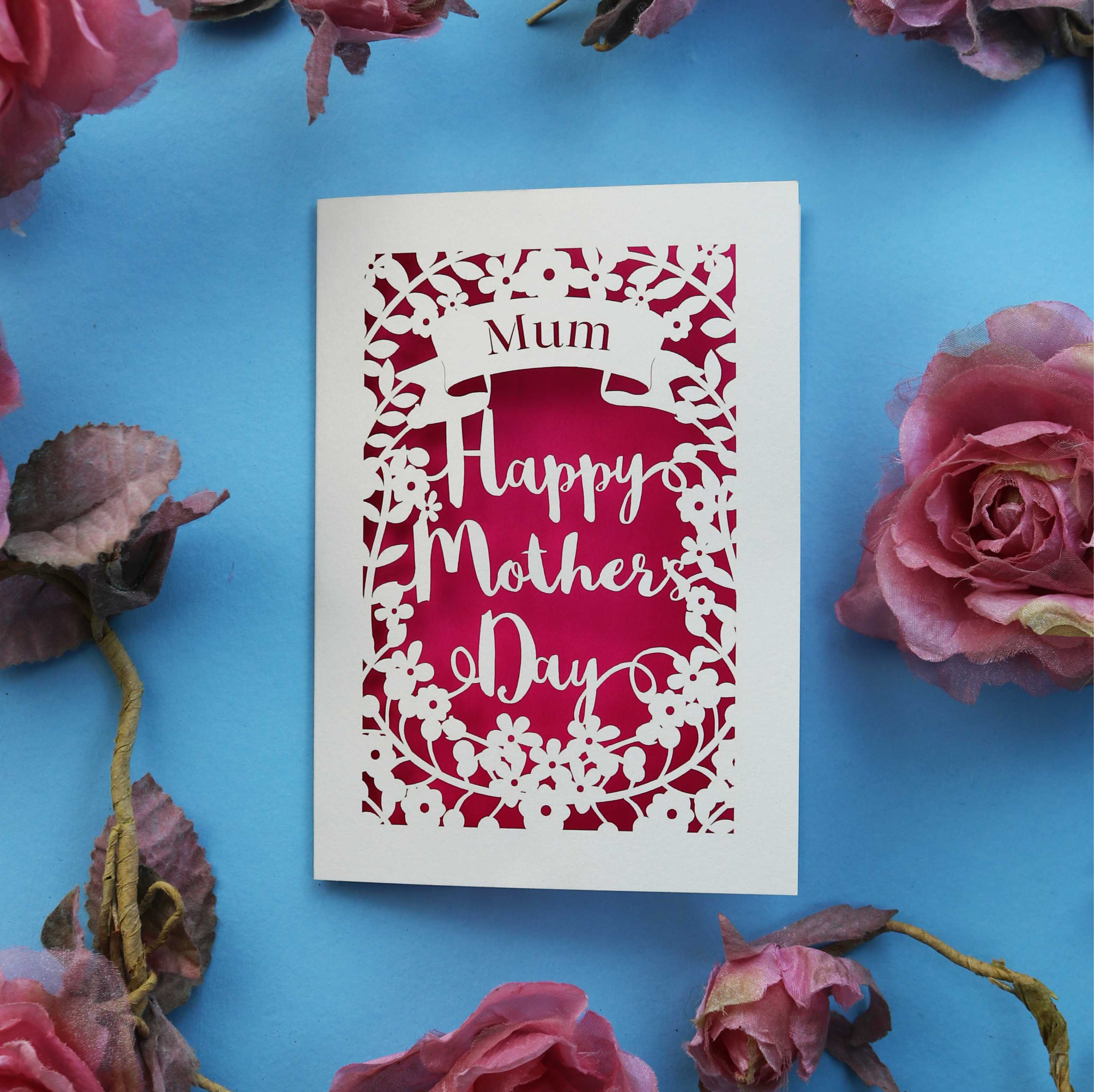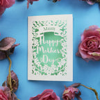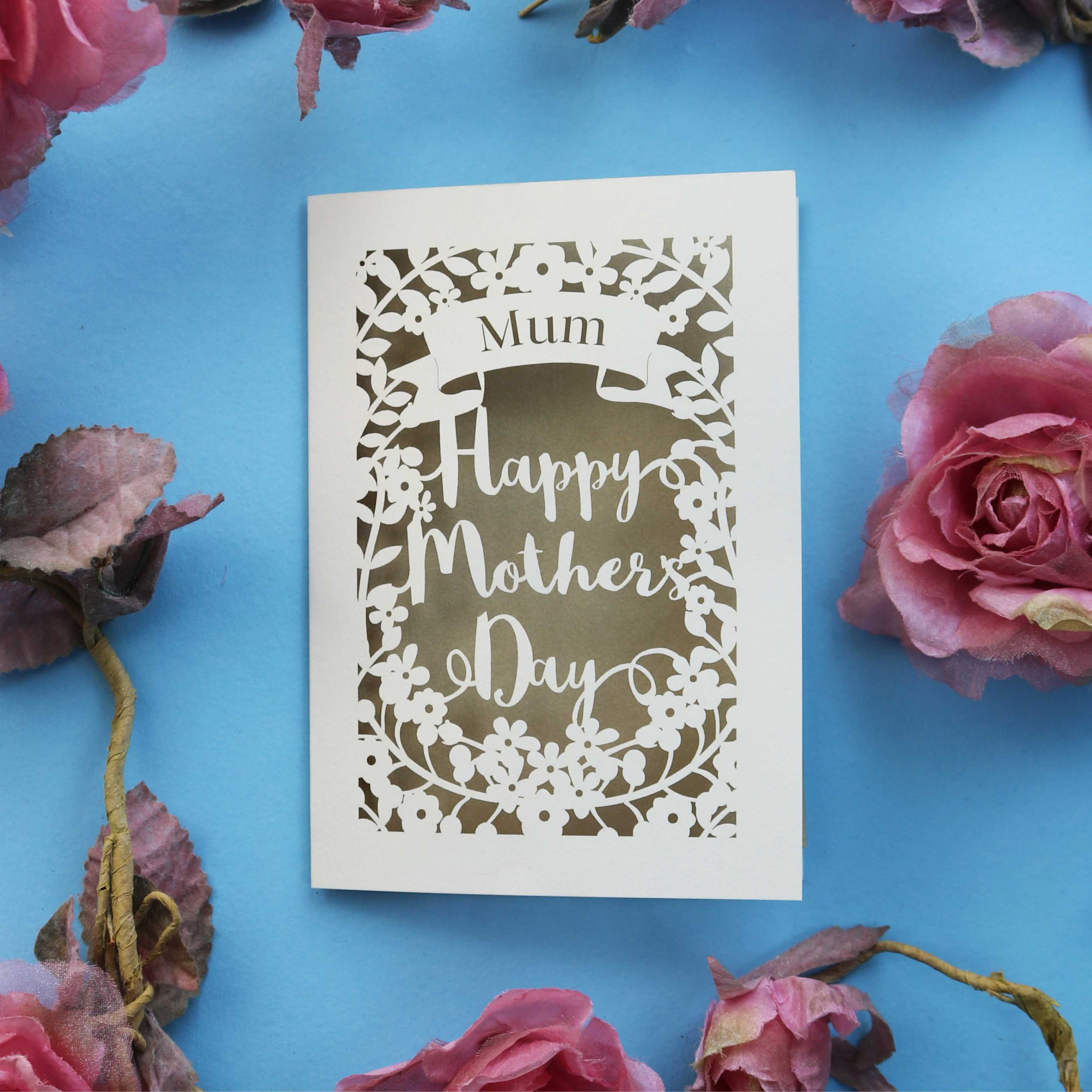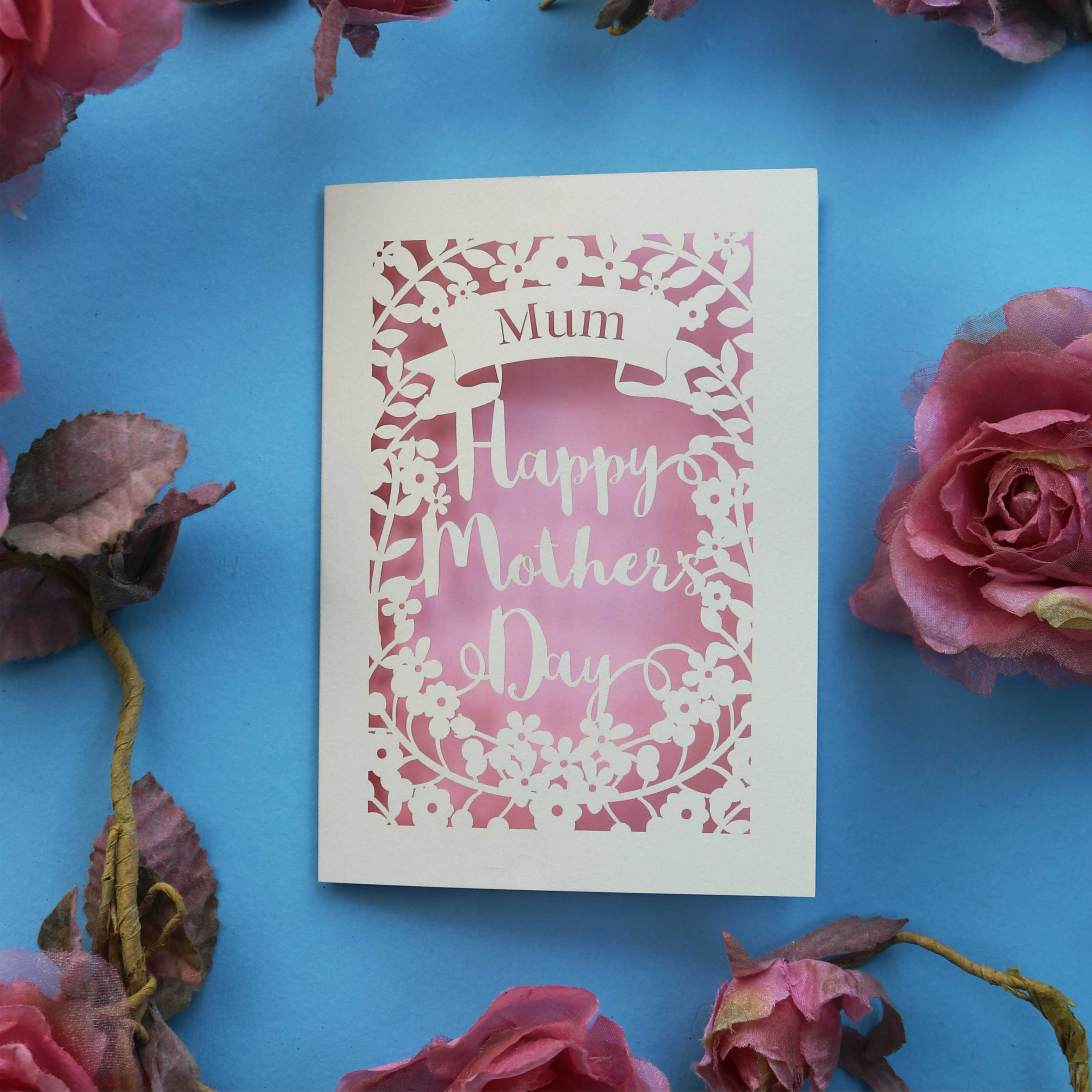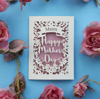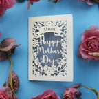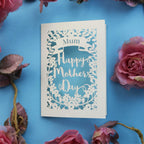 This beautiful laser cut Mother's Day card can be personalised with the recipient's name, making it perfect for mums, step mums, grandmothers. All cards will read "Name, Happy Mother's Day"